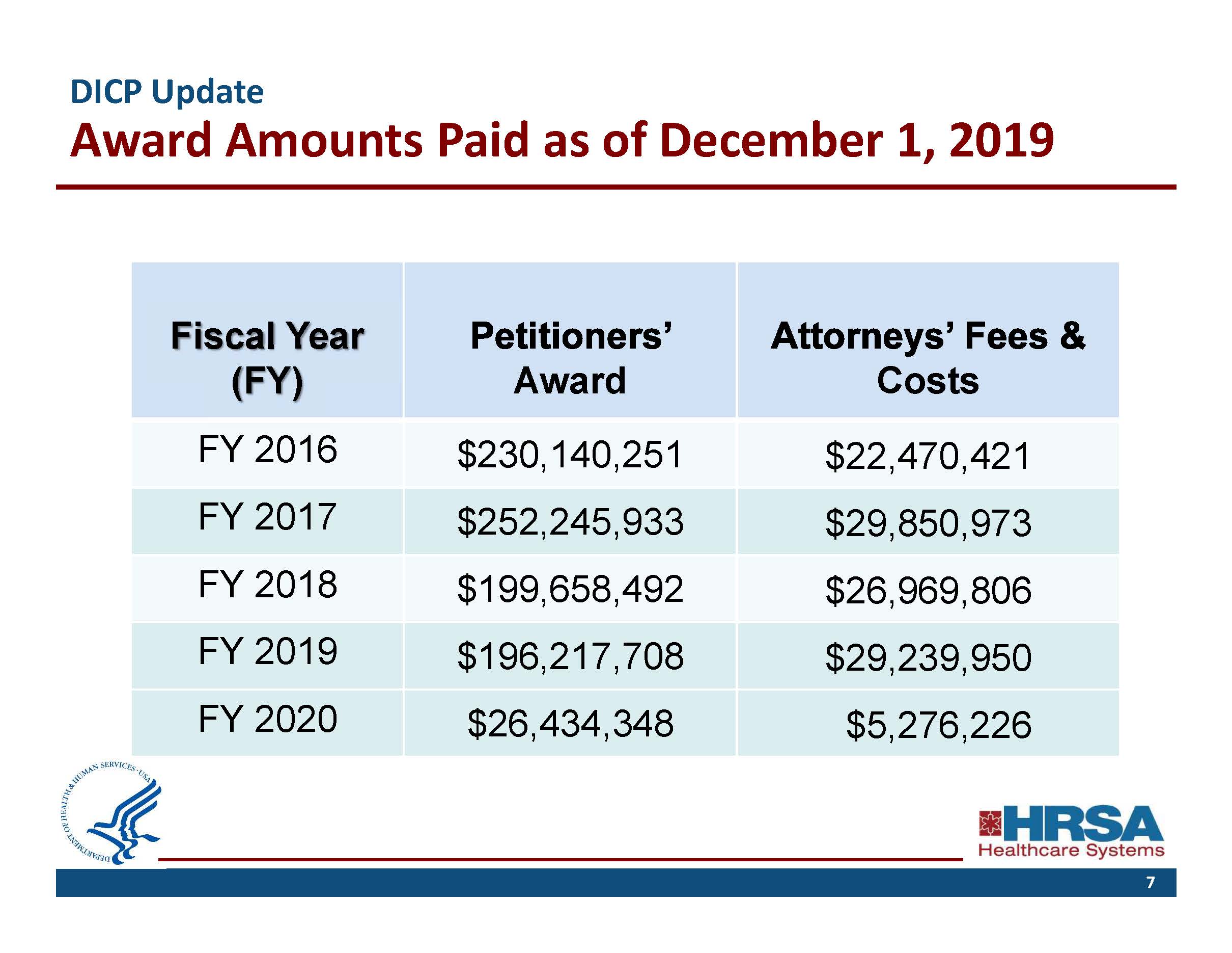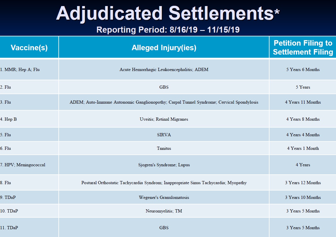At this meeting the Division of Injury Compensation Programs (DICP) reported that through December 1, 2019, the federal government’s National Vaccine Injury Compensation Program had paid out $225,457,658.00 for vaccine injuries and deaths for the fiscal year 2019.