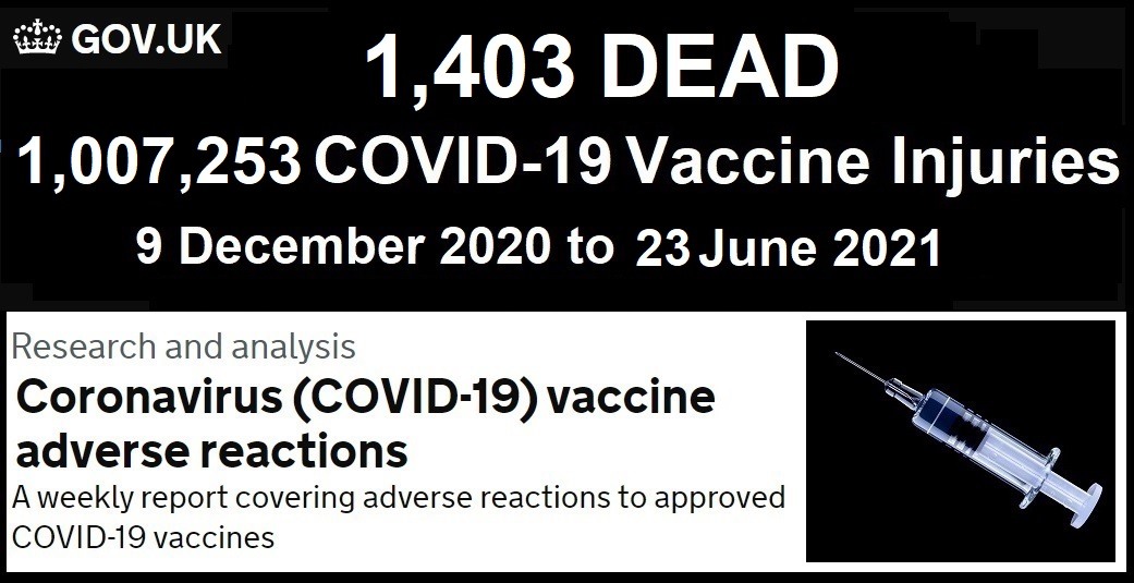 The UK Government’s reporting system for COVID vaccine adverse reactions from the Medicines and Healthcare products Regulatory Agency released their latest report today, July 1, 2021.