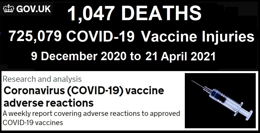 The UK Government’s reporting system for COVID vaccine adverse reactions from the Medicines and Healthcare products Regulatory Agency released their latest report today, April 29, 2021.