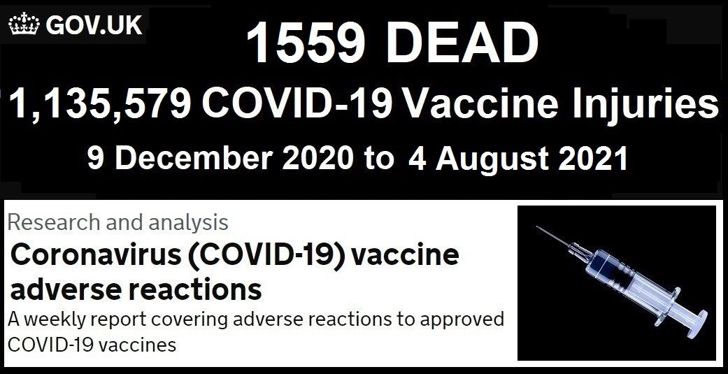 The UK Government’s reporting system for COVID vaccine adverse reactions from the Medicines and Healthcare products Regulatory Agency released their latest report last Friday, August 13, 2021.