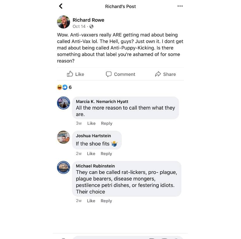 Richard Rowe was an outspoken critic of “anti-vaxxers,” mistakenly believing that they were stupid and uninformed. When he addressed them, he stated “I am probably the smartest person you know, and I spent 8 months analyzing this thing.”
