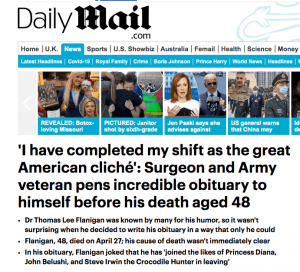 First, none of the media outlets that covered this story (except the New York Post) mentioned that Dr. Flanigan received experimental Moderna mRNA shots in January and February. However, the Post, like the other outlets, wrote that his cause of death is “not clear.” Second, the headlines are practically celebrating his death, perhaps in an attempt to deflect attention away from the Moderna shots.