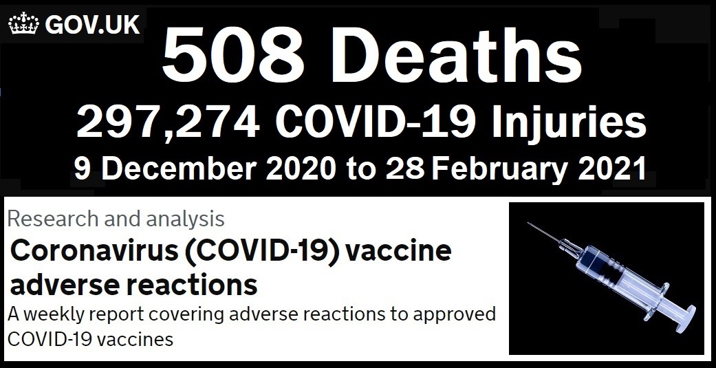 The UK Government’s reporting system for COVID vaccine adverse reactions from the Medicines and Healthcare products Regulatory Agency released their latest report today, March 11, 2021.