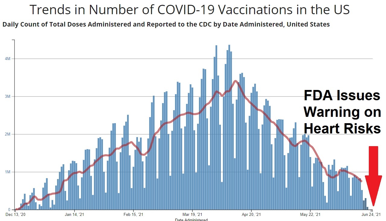 As we have been reporting throughout the rollout of these non-FDA approved injections, hundreds of cases of people suffering heart problems, including DEATH, have been reported to VAERS, the Government database that tracts adverse reactions to “vaccines.”