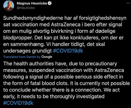 Earlier today, Denmark’s health minister Magnus Heunicke tweeted that the health authorities in Denmark were conducting a thorough investigation into the issue.