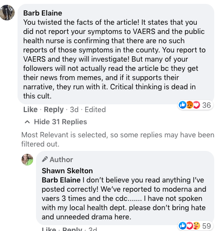 But Shawn replied that they reported her injury to Moderna and to VAERS 3 times.