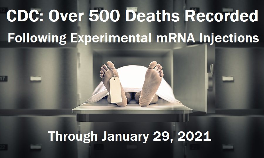 The data goes through January 29, 2021, with 11,249 recorded adverse events, including 501 deaths following injections of the experimental COVID mRNA shots by Pfizer and Moderna.