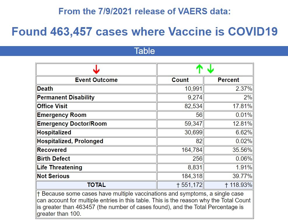 There are now 551,172 adverse reactions recorded out of 463,457 cases, including 9,274 permanent disabilities, 59,403 emergency room visits, 30,781 hospitalizations, and 8,831 life threatening injuries.