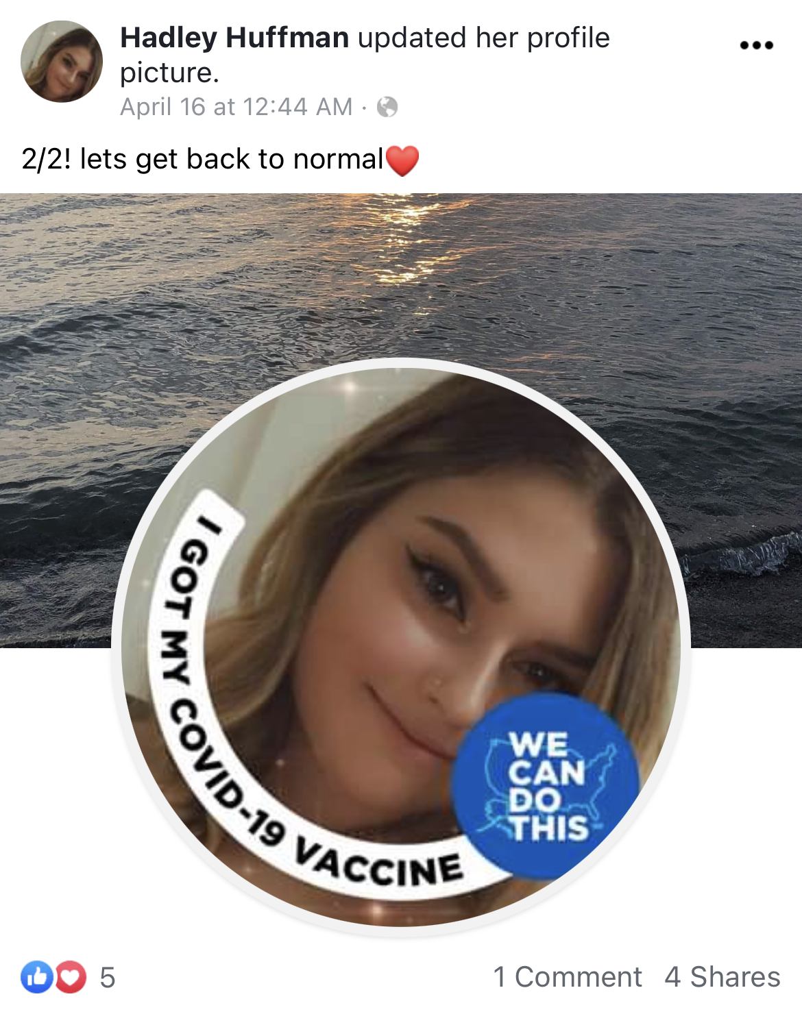We do know that she had two doses and that she had hopes of things getting back to normal after her vaccination.