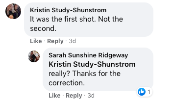 She acknowledged it was Pfizer on April 3 and even said the first injection “had me down for the count.”
