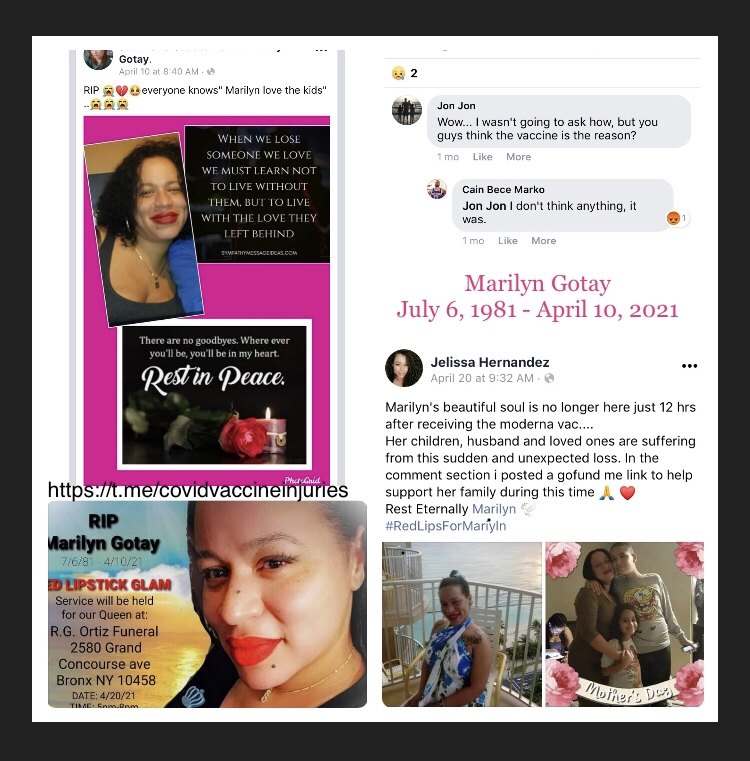 39 Year Old Marilyn Gotay Dead 12 Hours After Moderna Vaccine