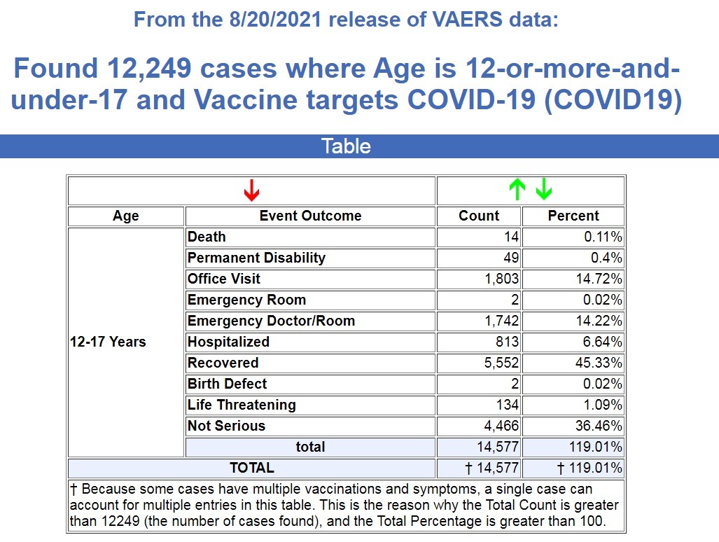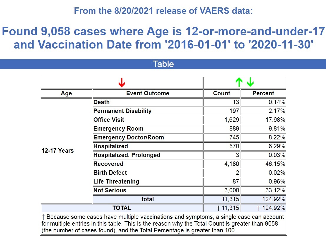 Here are the current stats of injuries and deaths among 12 to 17-year-olds during the past 9 months since the COVID injections were authorized, and keep in mind that authorization for 12 to 15-year-olds did not come until May 11th, less than 5 months ago.