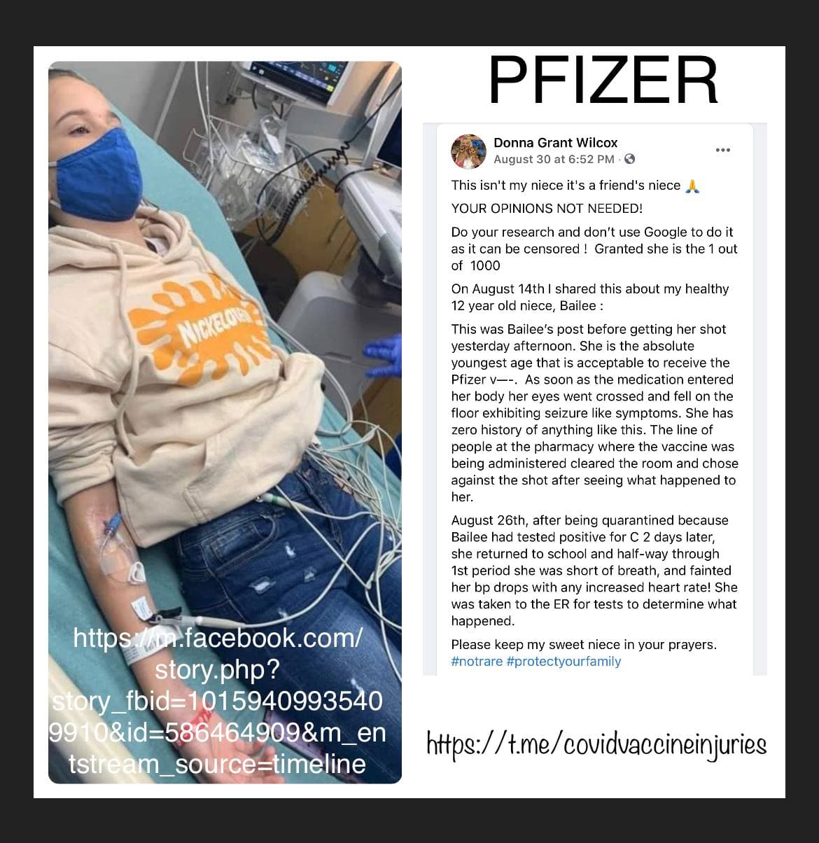The following stories are posted on the “Covid Vaccine Injuries” Telegram channel.