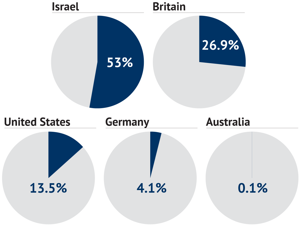 To date, Israel has vaccinated over 53% of their population, twice the percentage of the next closest nation, Britain, with 26.9%.