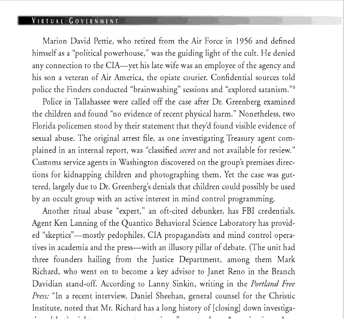 The investigation into the cases described cults, child sex trafficking and kompromat. In recent decades, the mainstream media has refused to report on such cases. Such cases (see below) have been “debunked” by the usual suspects that the Crime Syndicate uses for cover. But the FBI’s own investigation suggests the cases were real enough and points to cover ups.