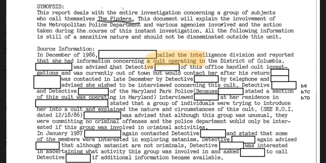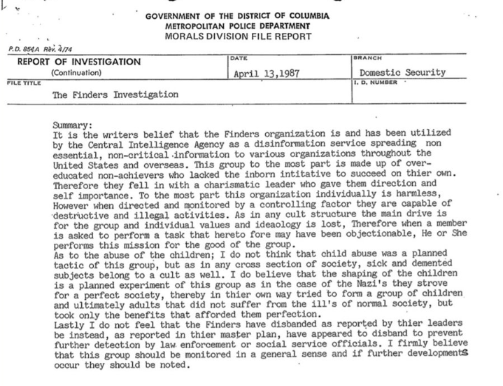 The D.C. Metro police on page 67 also offered up a rather sketchy theory that The Finders was a CIA psyop of some sort, but it never concluded the obvious.