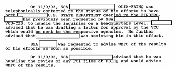 This is the same CIA group that the FBI just declassified many of the files from their investigation into The Finders, although many names remain redacted to protect the guilty. (See below.)
