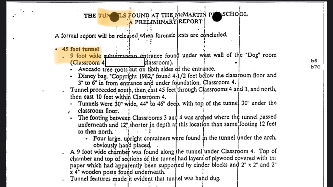 One of the controversies in the case were reports by the children and speculation that there were tunnels and rooms under the school center. The debunkers ultimately succeeded in pigeon holing this into the realm of “crazy conspiracy theory.”