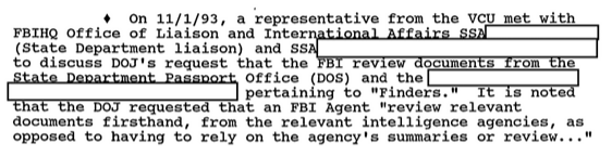 On page 39 we learn of a request that the FBI review original first-hand docs on The Finders instead of relying on previous agents summaries or review reports. Permission would be required to see the direct evidence.