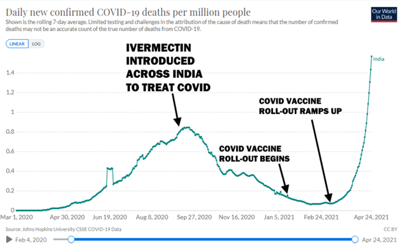 After seeing relatively good success in handling the COVID crisis with an emphasis on early treatments such as Ivermectin, India is all of a sudden seeing a surge in cases and deaths being attributed to the COVID-19 virus.