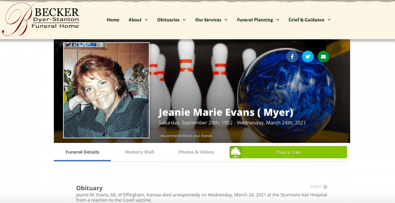 TOPEKA — “Vaccines are the leading cause of coincidences.” That is a meme going around on Twitter. One family is circumventing the inevitable propaganda by stating the facts on their loved one’s obituary.