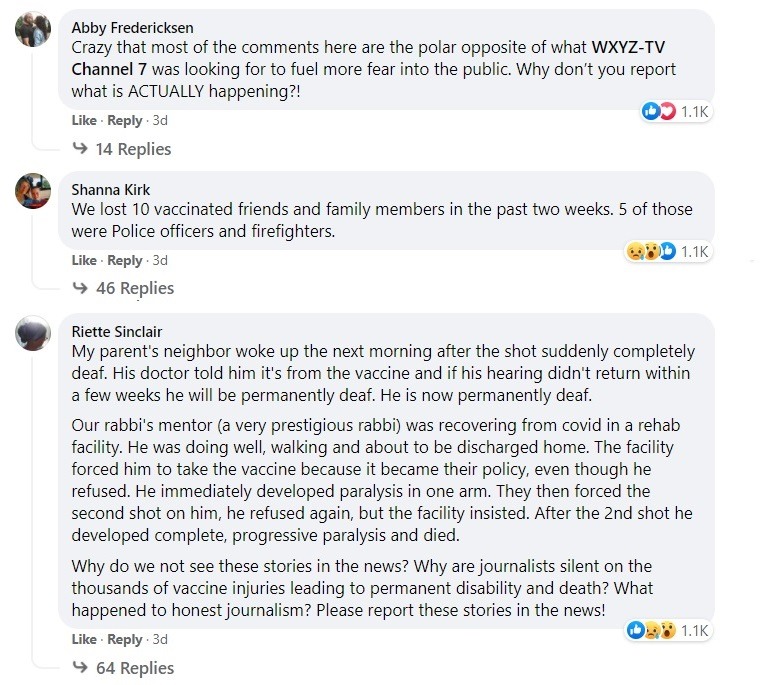 WXYZ TV Channel 7 in Detroit asked their viewers on their Facebook Page last Friday to direct message them if they lost a loved one due to COVID-19 if they refused to get one of the COVID-19 vaccines.