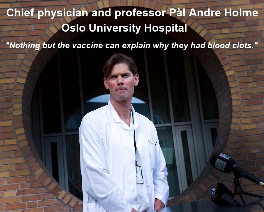 A Norwegian physician and professor of medicine at Oslo University Hospital, Pål Andre Holme, held a press conference earlier today to announce the results of their investigation into three healthcare workers under the age of 50 in Norway who developed blood clots following the AstraZeneca experimental vaccine, resulting in the death of one of them.