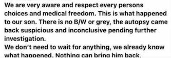 The next day she said she was feeling better “for the most part.” That was the last comment she made on Facebook. Ms. Penrod died on Wednesday, March 17, becoming the youngest victim this blog has covered for all of the experimental shots.