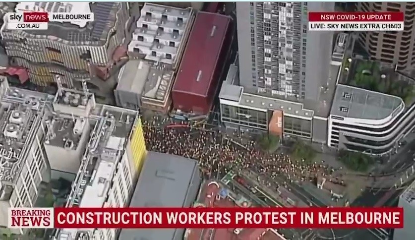 Led by construction workers but also joined by other trade unions, people took to the streets of Melbourne en masse Tuesday, shutting down the busiest freeway in all of Australia for a while.