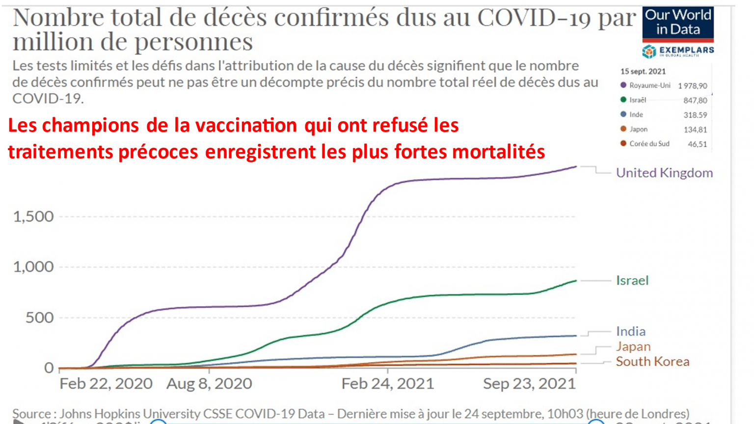 The pursuit of a vaccine-only policy leads to a deadly impasse, whereas countries that officially advise early treatment (India) or allow their doctors to prescribe it (Japan, Korea) fare much better.