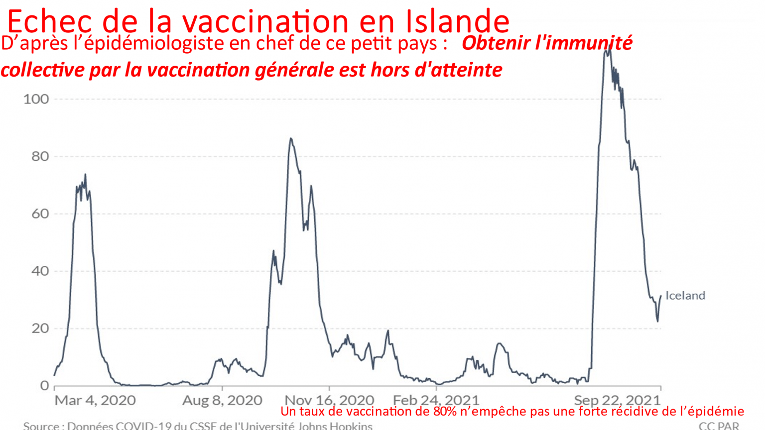 But by mid-July 2021, new daily infections had risen from about 10 to about 120, before stabilizing at a rate higher than the pre-vaccination period. This sudden recurrence convinced the chief epidemiologist of the impossibility of obtaining collective immunity through vaccination.