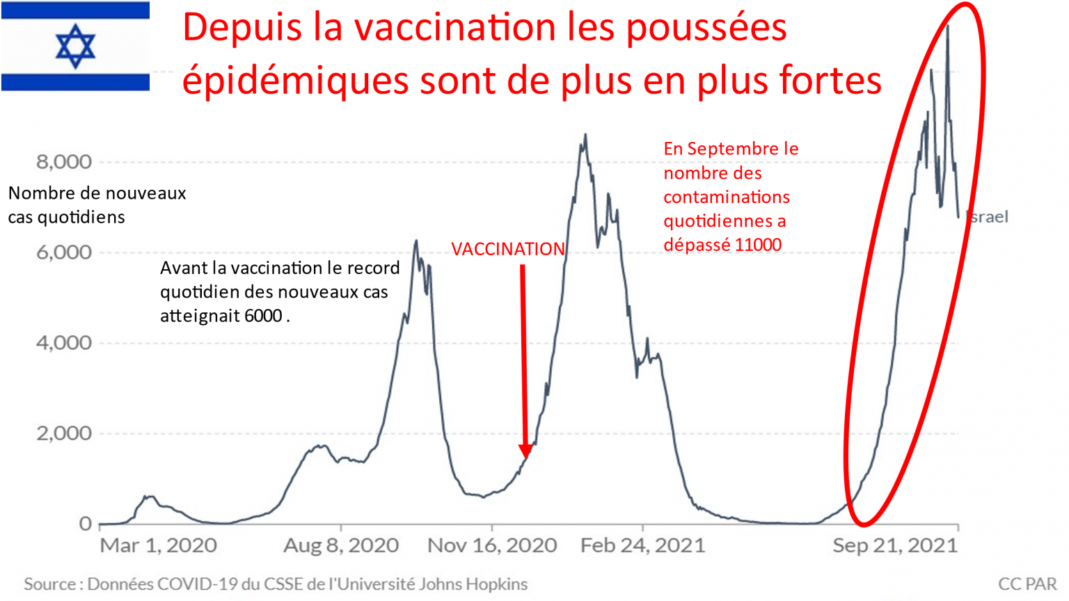 But the epidemic has rebounded stronger than ever since the end of June, and more than 11,000 new cases were recorded in 1 day (September 14, 2021) surpassing the peaks seen in January 2021 during the outbreak following the first Pfizer injections by nearly 50%.