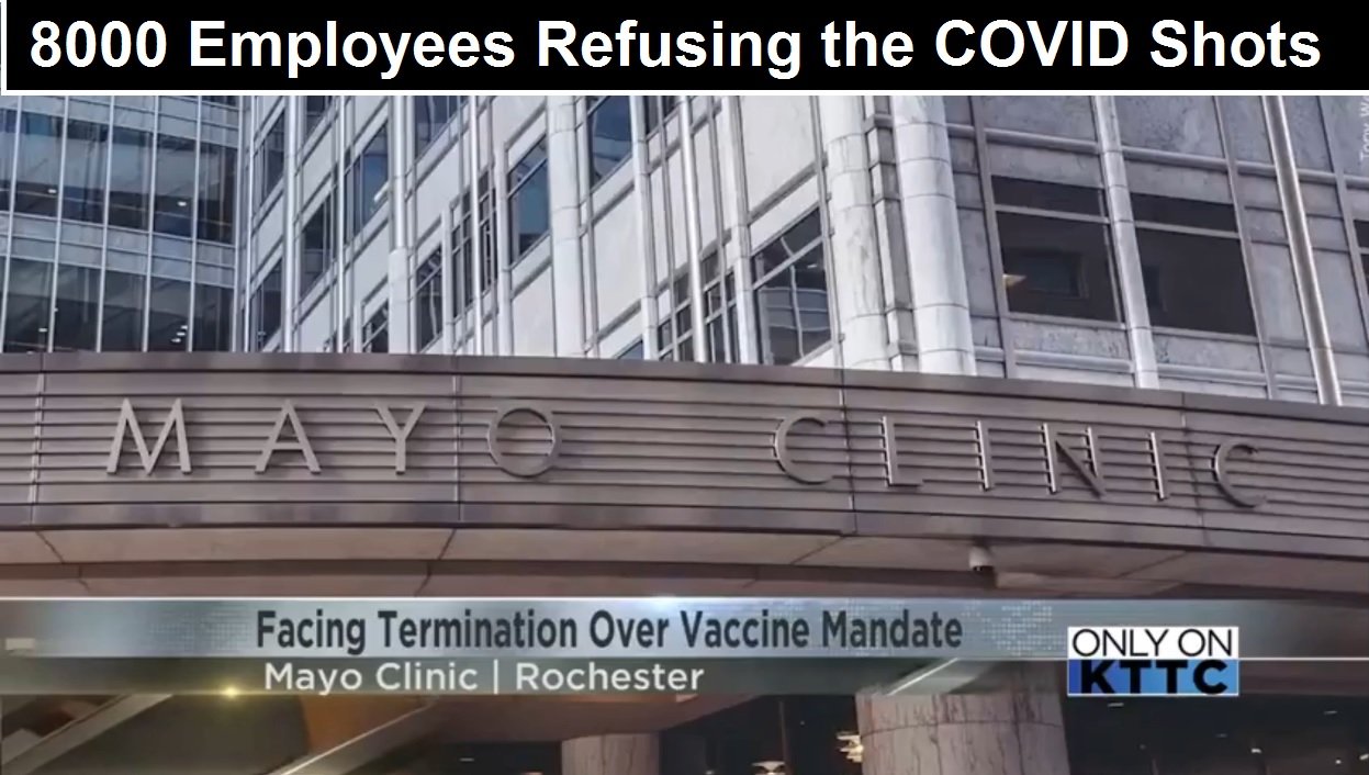 In another sign that the medical system in the United States is self-destructing due to COVID-19 vaccines and vaccine mandates, the world famous Mayo Clinic with headquarters in Rochester, Minnesota, has sent warning letters to 8000 employees who have not yet taken a COVID-19 shot.