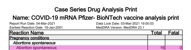 The MHRA Yellow Card data now shows that the Oxford jab has caused four women to sadly lose their unborn child, an increase of one on the previous weeks data.