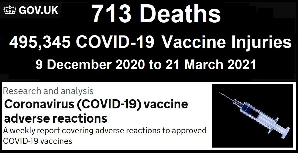 They report a total of 713 deaths and 495,345 injuries recorded following the experimental vaccines.
