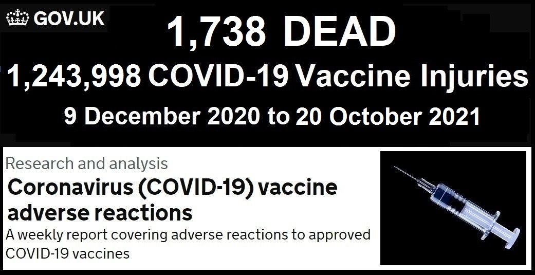 The UK Government’s reporting system for COVID vaccine adverse reactions from the Medicines and Healthcare products Regulatory Agency released their latest report yesterday, October 28, 2021.
