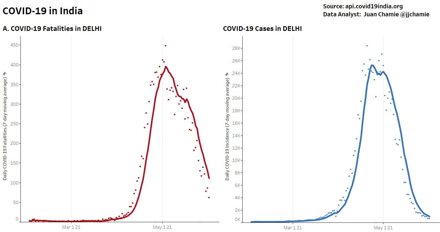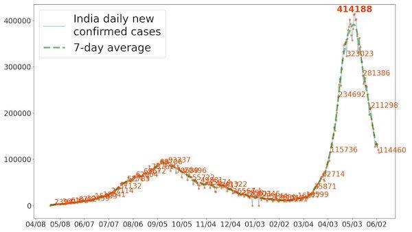 Just over four weeks ago India was in a very dark place. At one point it was accounting for almost half of all global cases and one in every four covid-19 deaths. The government had lost complete control. Four weeks later, the country, while not out of the woods, is in a much better place. While the official numbers of cases and deaths are probably still a fraction of the real numbers, the trend is clearly moving in the right direction.