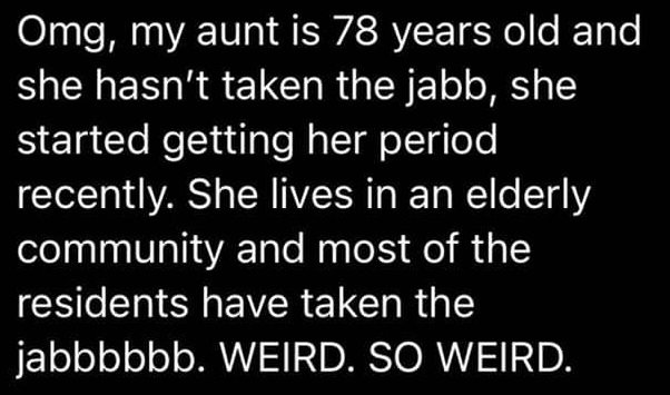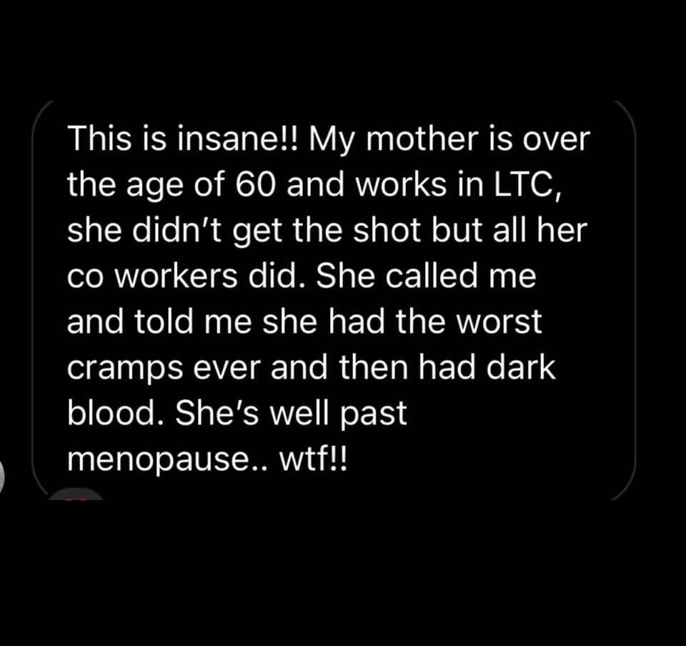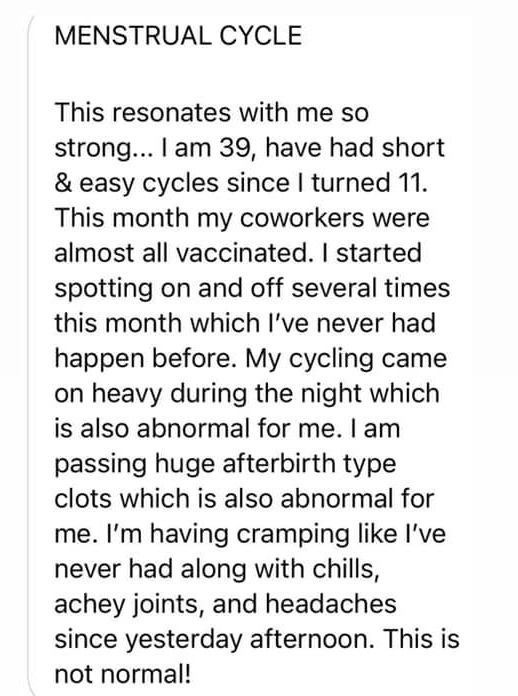 Severe cramping, heavy bleeding for days on end, post-menopausal women all of a sudden menstruating again, irregular periods, and more are all being reported by women after being injected with a COVID experimental shot.