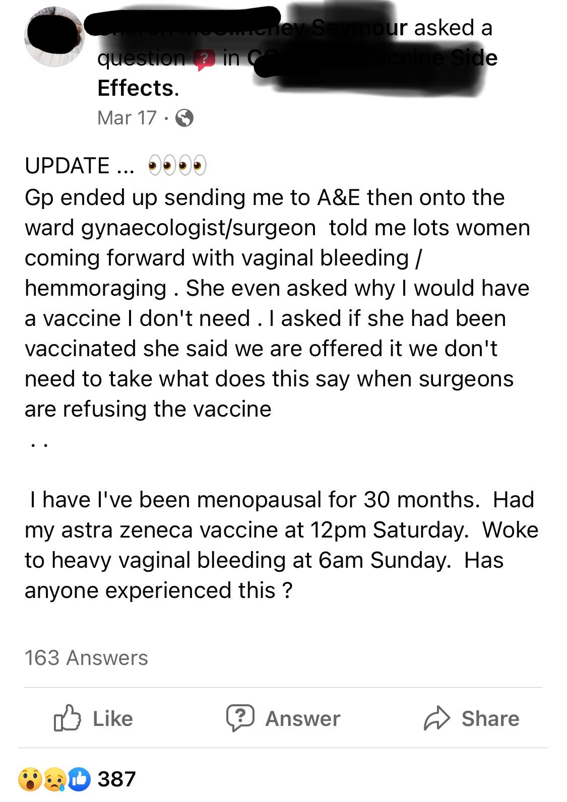 ‘A colleague told me she has heard from others that their periods were heavy post-vax,’ she wrote.