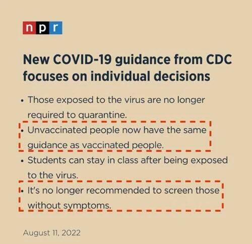 The statement “unvaccinated people now have the same guidance as vaccinated people,” is, of course, a meaningless statement, because those unvaccinated with COVID shots (like myself), are unvaccinated specifically because we don’t follow CDC “guidance” to begin with, but know how to research and think for ourselves.