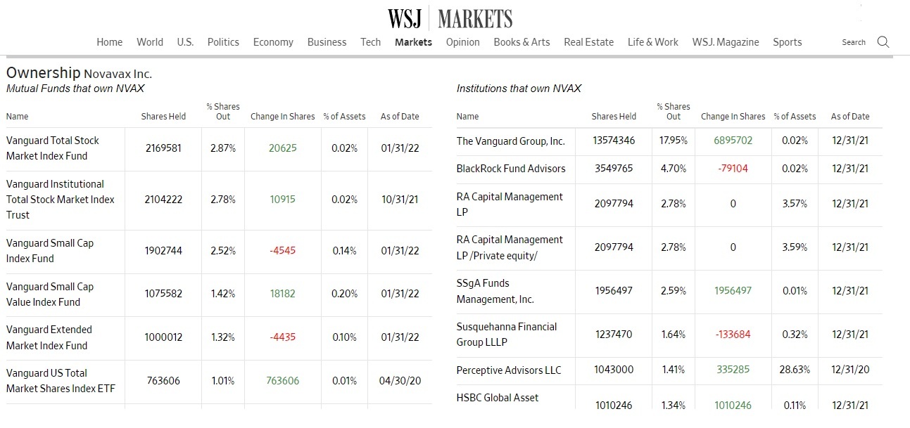 Here’s who owns Novavax according to the Wall Street Journal: