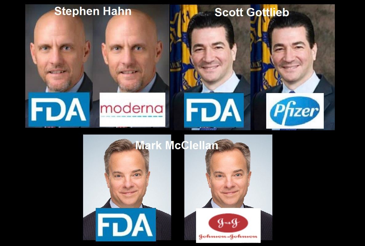 All three drug companies that have EUA COVID vaccines in the U.S., Pfizer, Moderna, J&J, have former FDA Commissioners working for them.