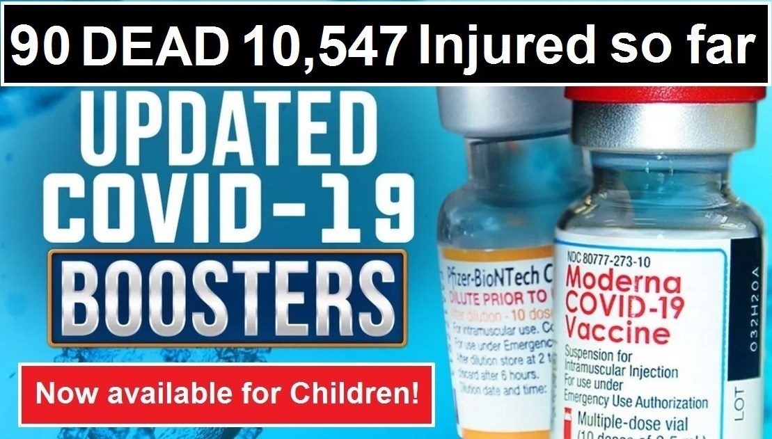 Since these Bivalent booster shots were authorized 3 months ago, there have been 10,547 reported cases of harm to the U.S. Government’s Vaccine Adverse Events Reporting System (VAERS), including 90 deaths. (Source.)