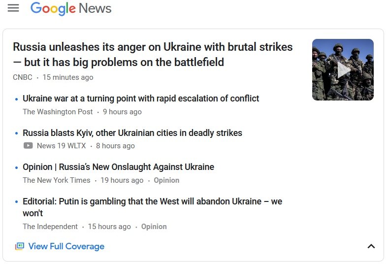 As of the time of writing this article, here are the headline stories in the U.S. Corporate Media via Google News: