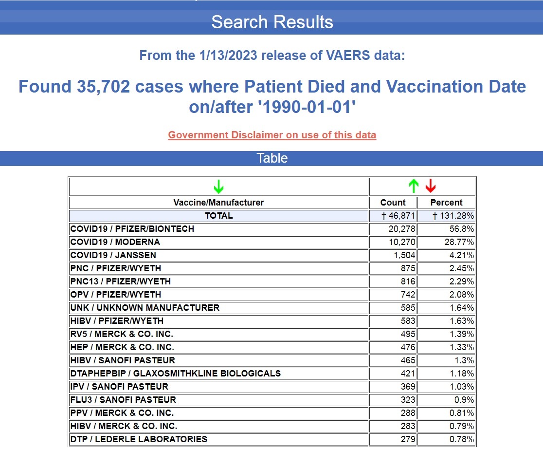 Official Government Data: Twice as Many Deaths Following COVID-19 Vaccines in 1 Year as Deaths Following All Vaccines for the Previous 30 Years
