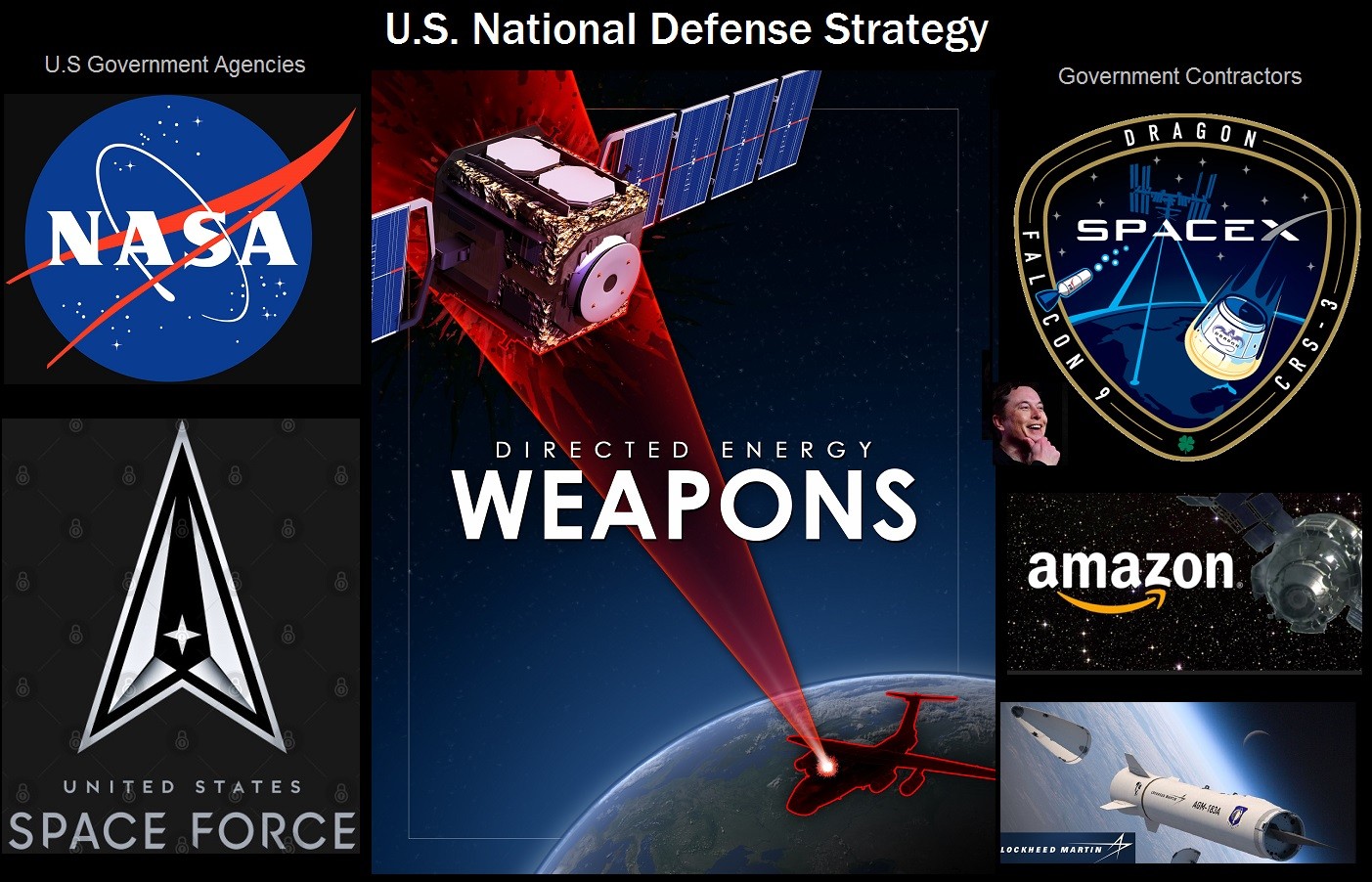 Along with traditional defense contractors such as Lockheed Martin, Raytheon, Boeing, and many others who are developing DEWs, Big Tech is becoming a major recipient of Defense Department contracts as well, and Elon Musk currently has the most satellites in orbit, many funded and used by the U.S. Military and their new military branch of service, Space Force, started by Donald Trump during his term as U.S. President.