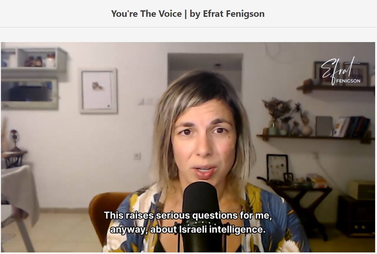 Efrat Fenigson is a private reporter who lives in Tel Aviv, and formerly served in the Israeli military. She writes on Substack, and has been publishing first-hand reports from Israel.
