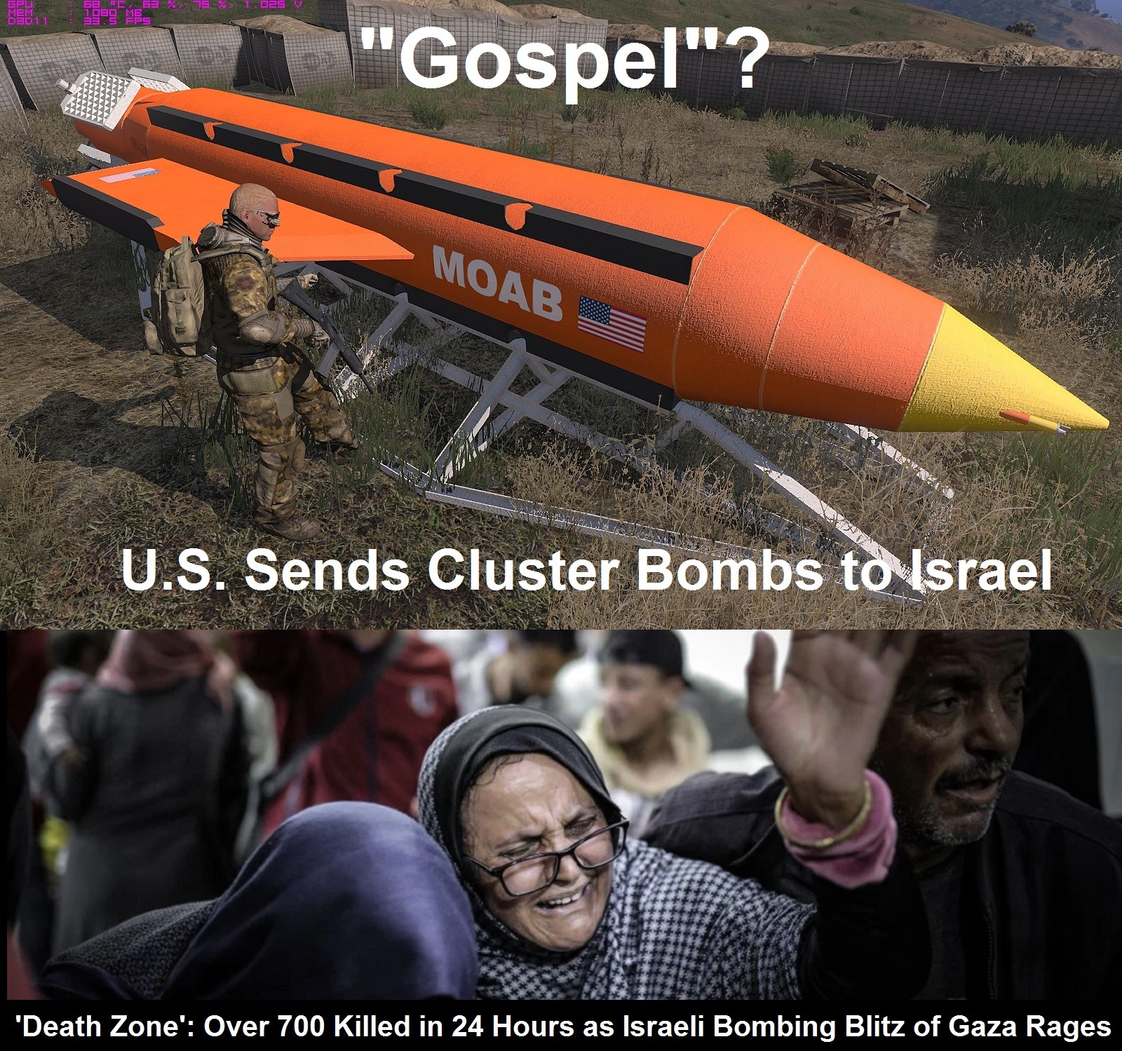 And it is widely being reported now that the United States is supplying bombs made in the United States to Israel to be used in “The Gospel” bombing attacks on the people in Gaza.
