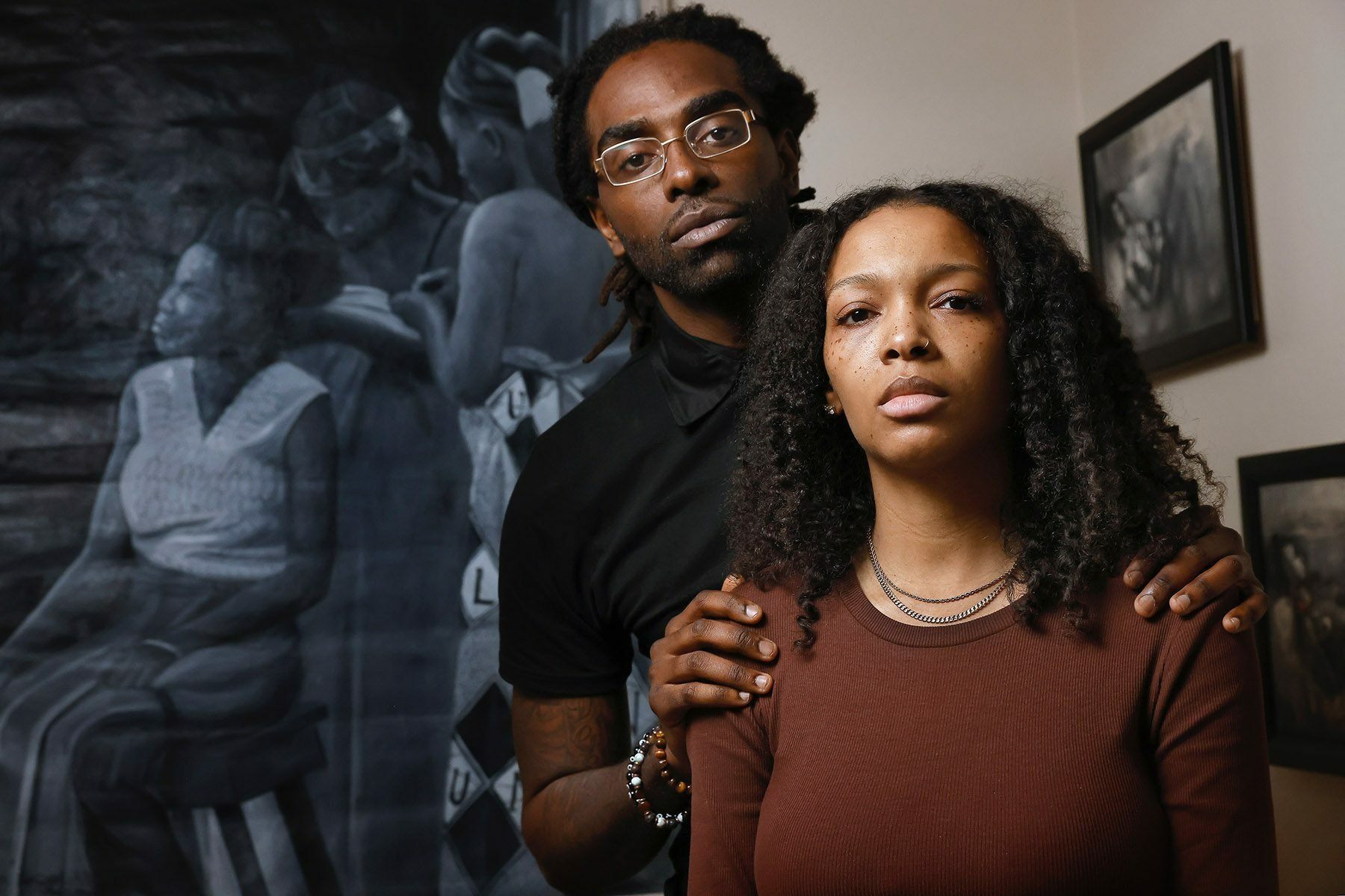 Temecia and Rodney pose for a portrait in DeSoto, Texas on March 28, 2023. (TOM FOX/THE DALLAS MORNING NEWS)