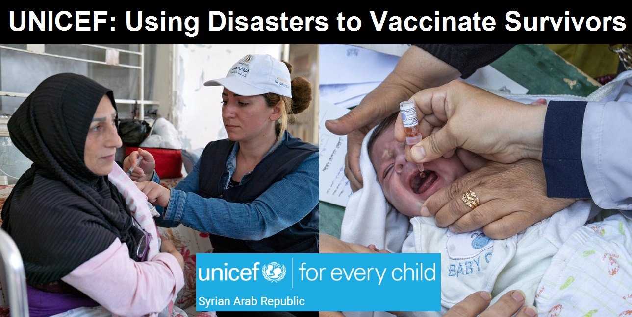 The #1 vaccine that UNICEF gives to children in disaster areas, is the oral polio vaccine (OPV), which is banned in western countries like the U.S., because it is known to “shed” and actually cause polio.